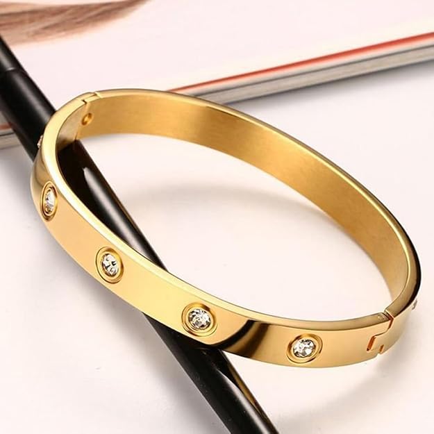 Stylish Stainless Steel Bracelets for Girls and Women from the house of Shining Diva. This latest stylish design bangle bracelet can be used by ladies as daily wear or party wear. This modern stylish bracelet is perfect to revamp your fashion jewellery collection. These are also special for gifts for girls for birthday, women, wife, best friend, valentine gift for girlfriend love, rakhi gift for sister, wedding gifts and anniversary gifts. Shining Diva is a well known brand across fashion jewellery sector. Shining Diva products are stylish and funky and are available at most affordable prices. This latest jewellery is studded with crystals stones. Shining Diva has huge collection of latest bangles for women traditional, bangles for wedding, party wear earrings, charm bracelets, western wear modern choker necklace for women, traditional jewellery set, pendant set and other accessories for women which includes ear cuffs, fashion party wear necklace and traditional earrings. Shining Diva is pioneer of Imitation jewellery and designer crystal pendent for girls. Shining Diva Fashion and Traditional jewelry give true value for your money.